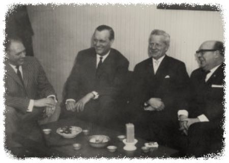 Tag der Gründung der Mozart-Gesellschaft Wiesbaden e. V. Gründungvorstand: Dr. Emil Debusmann, Kurt Breuer (damaliger Vorsitzender des Vorstands), Ernst Fischer, Eduard McCann (v. l.).